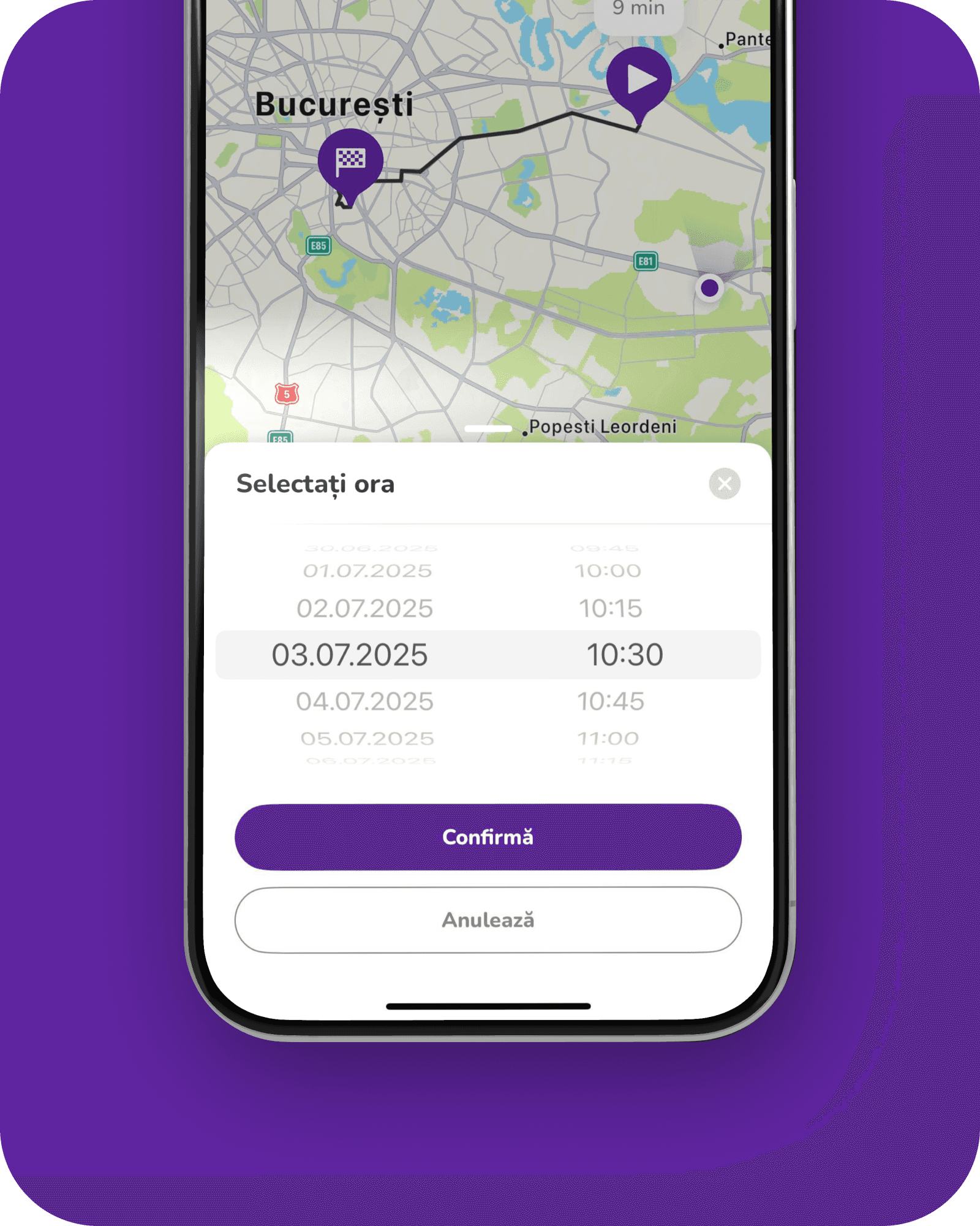 Alege data și ora de pick-up, plătește cursa și ai terminat!