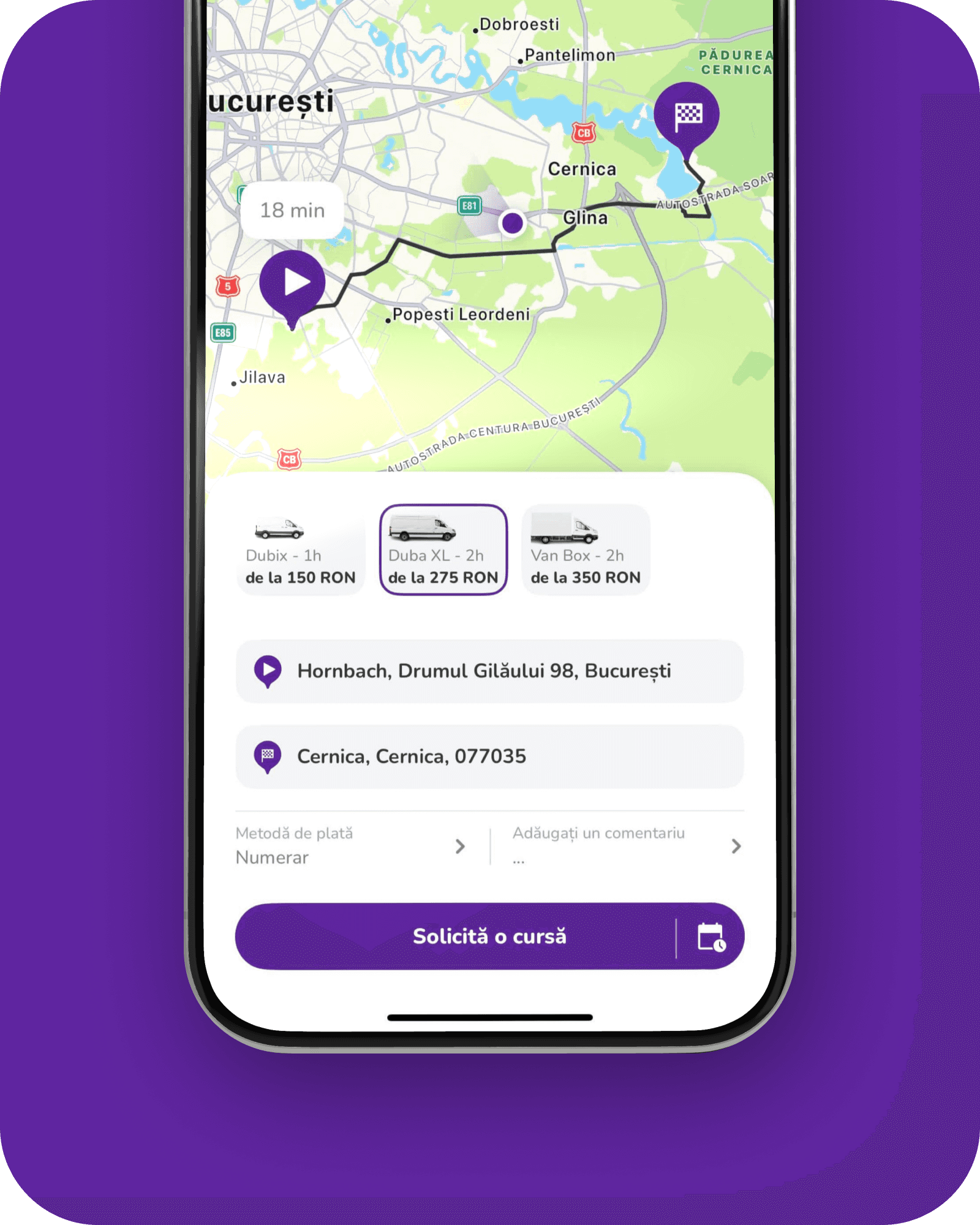 Introdu adresa ta și alege tipul de dubă, operatorii noștri vor veni către tine.