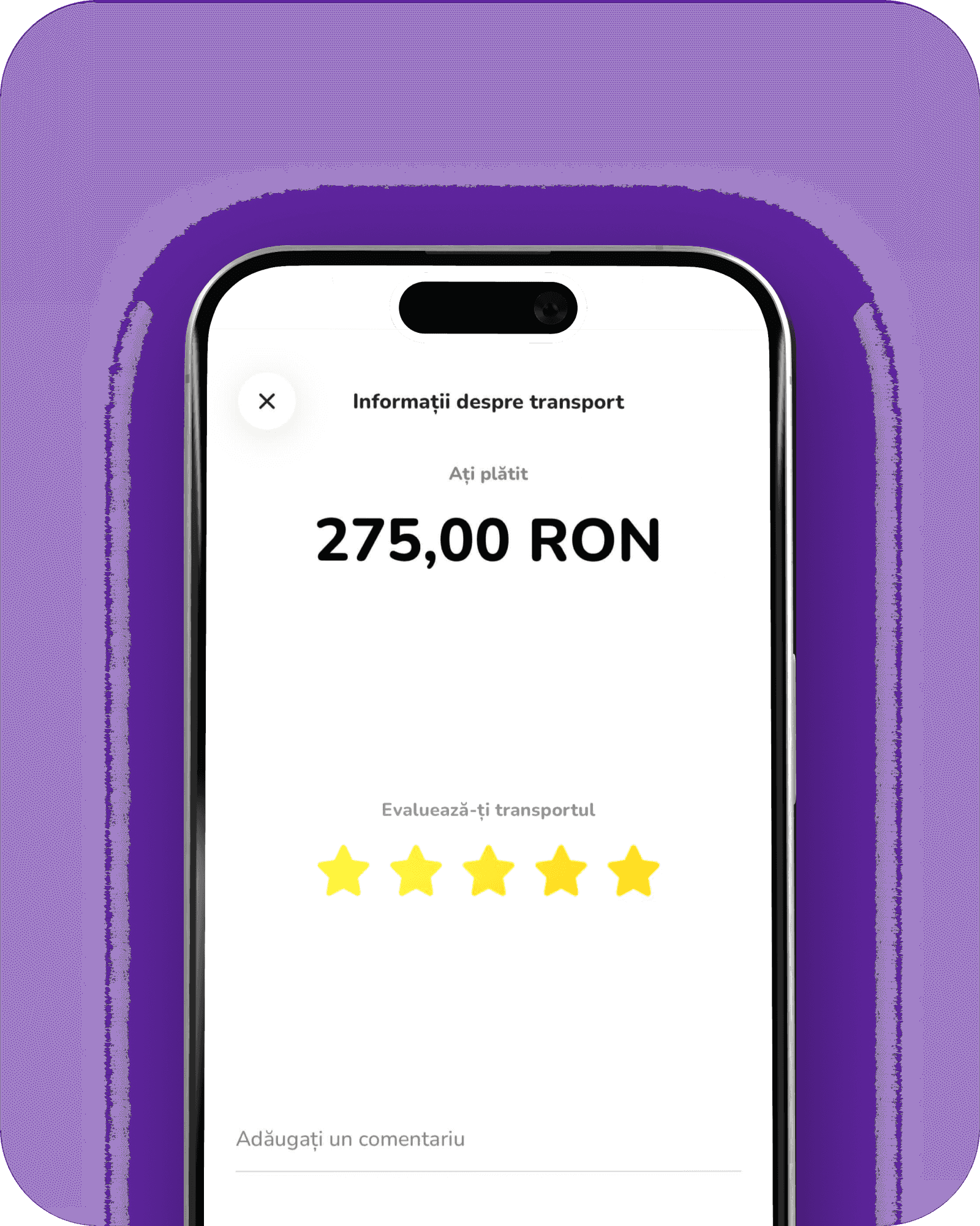 Poți lăsa review șoferilor sau serviciului direct în aplicație.